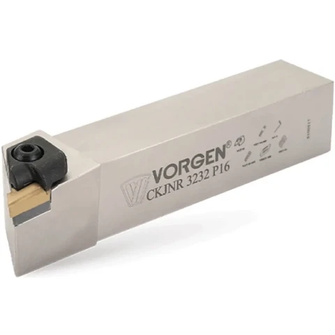 Державка (резец) CKJNR3232P16 со сменными твердосплавными пластинами для наружной обработки на универсальных токарных станках и станках с ЧПУ. Предназначена для пластин KNUX1604**, которые крепятся прихватом сверху. Сечение державки 32x32 мм, исполнени...