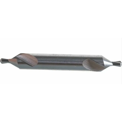 Сверло центровка 2.5 Р6М5 (HSS) двухстороннее, из быстрорежущей стали. Тип A, без предохранительного конуса, со спиральными стружечными канавками. Правое исполнение (правосторонняя спираль). Без покрытия. DIN333 (ГОСТ 14952).Центровочный угол 60⁰, угол заточки (угол при вершине) 120⁰. Диаметр сверла − 2.5 мм.Назначение: сверление направляющих (пилотных) предельно точных отверстий и начального засверливания при работе со сверлами больших диаметров. Повышенная жесткость и стойкость к изгибу сверла благодаря тому, что диаметр рабочей части значительно меньше хвостовика. Центровочные сверла HSS точно и быстро сверлят, легко отводя стружку. Материал сверла − быстрорежущая сталь HSS (Р6М5 − вольфрам 6%, молибден 5%). Повышенная вязкость, прочность, отличное сопротивление износу, приемлемая степень шлифовки. Прекрасно держат заточку, ударную нагрузку, сверла стойкие к повышенным температурам. Увеличенная склонность к обезуглероживанию.