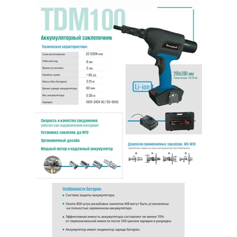 • Диаметр приминяемых заклепок: М3-М10